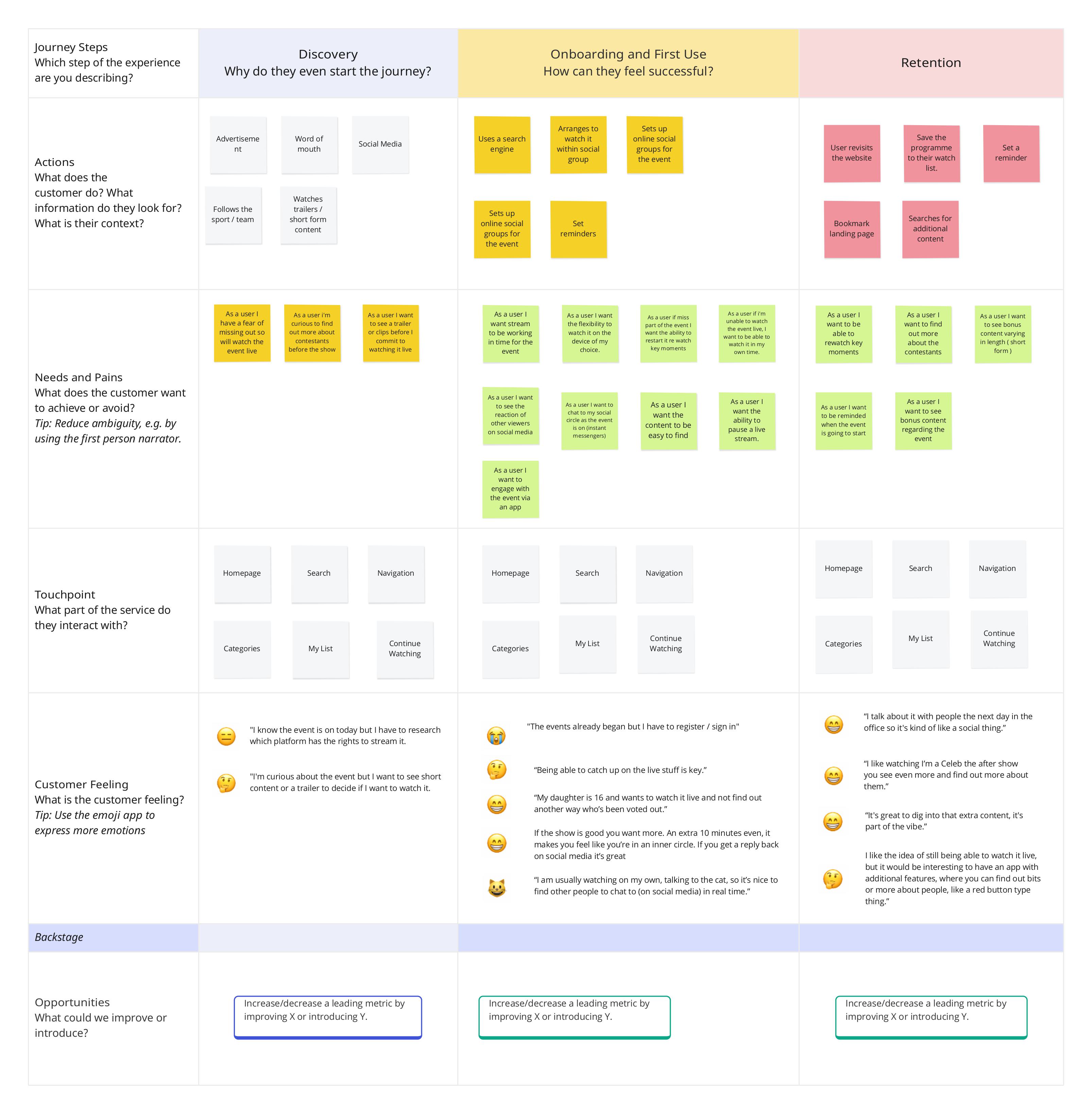 At the same time, the brief for the new experience was vague. Internally the ambition was often described as making live feel 'immersive', but there was no shared definition of what that meant in practice.