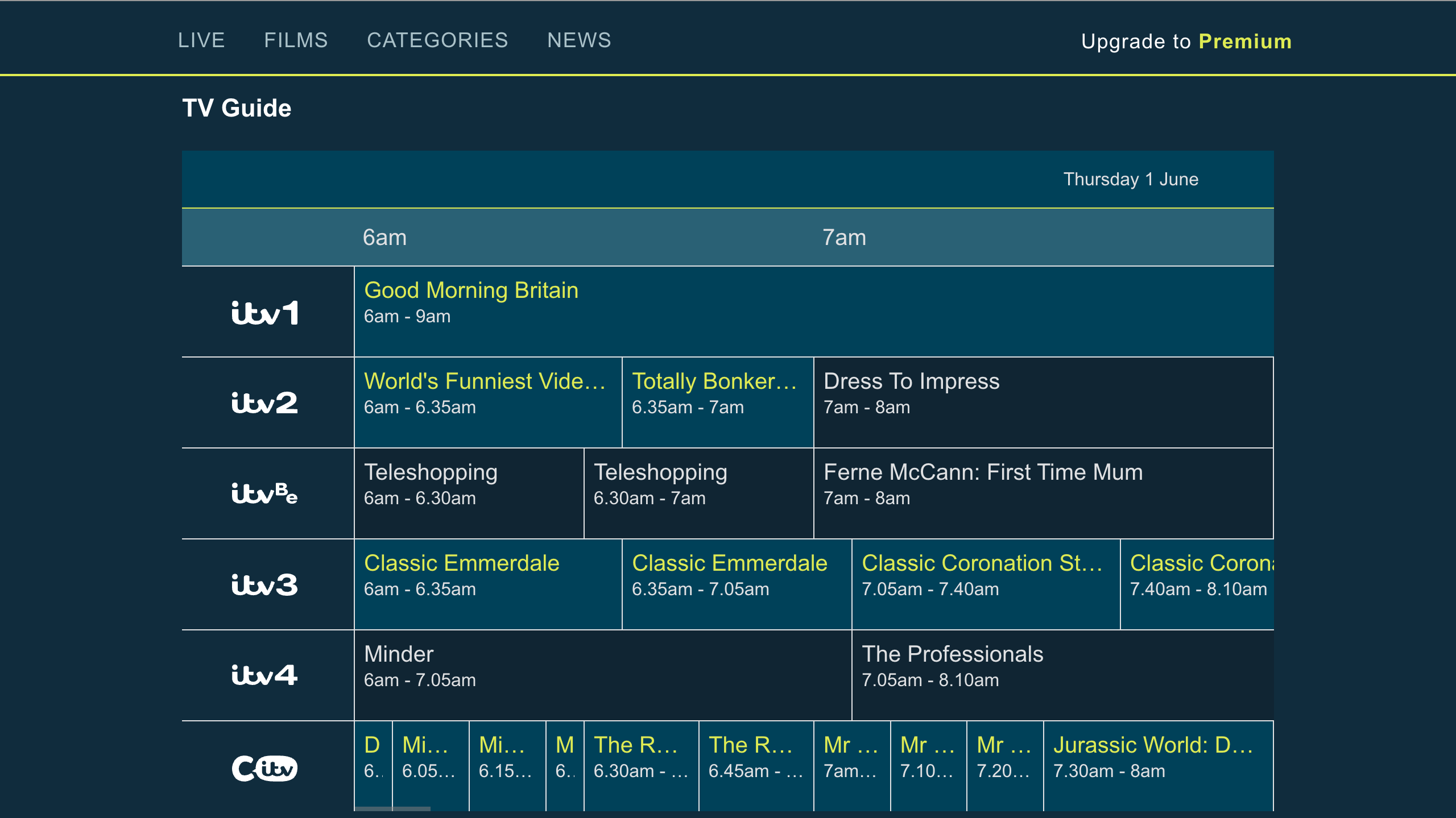 During the redesign, some stakeholders proposed removing the TV guide entirely. It was often viewed as a legacy broadcast feature that did not align with ITVX’s ambition to position itself as a modern streaming platform.